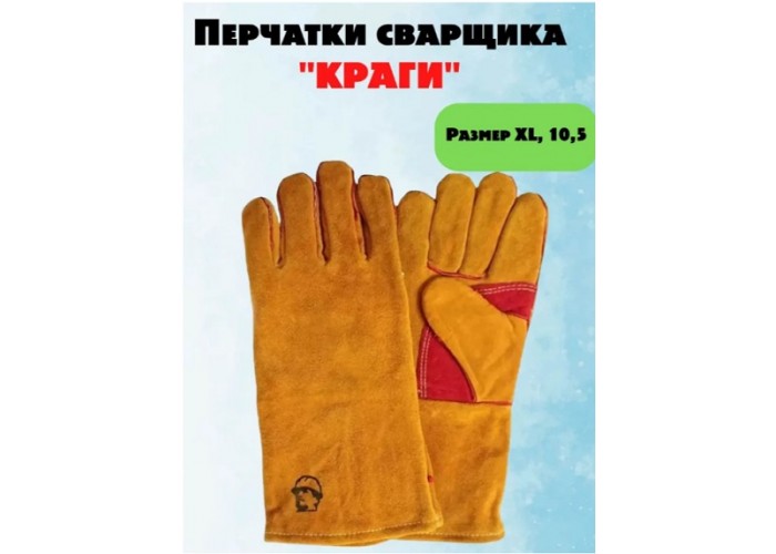 Описание: Краги из высококачественного желтого спилка (толщина 1,1 - 1,2 мм), пятипалые.